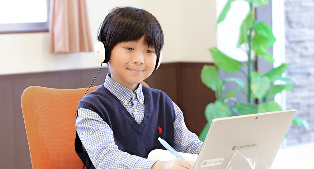 英検®5級・4級・3級に対応したテキストを用いて、それぞれの目標や習熟度に合わせて授業を進めます。タブレットで流れてくる音声を聞きながら、重要なフレーズが身につくまで練習を繰り返します。また、筆記やリスニングのチェックテストを実施して、しっかり定着しているかを確かめます。