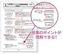 授業を受ける際のノートです。模式図・表の枠などがあらかじめ印刷されているので、短時間で効率よくポイントをまとめることができます。