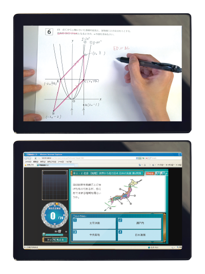 「さなる式タブレット」は、学力アップに特化した教材そのもの。高機能な学習支援ツールが、授業はもちろんのこと、効率のよい家庭学習や定期テスト対策を実現させます。