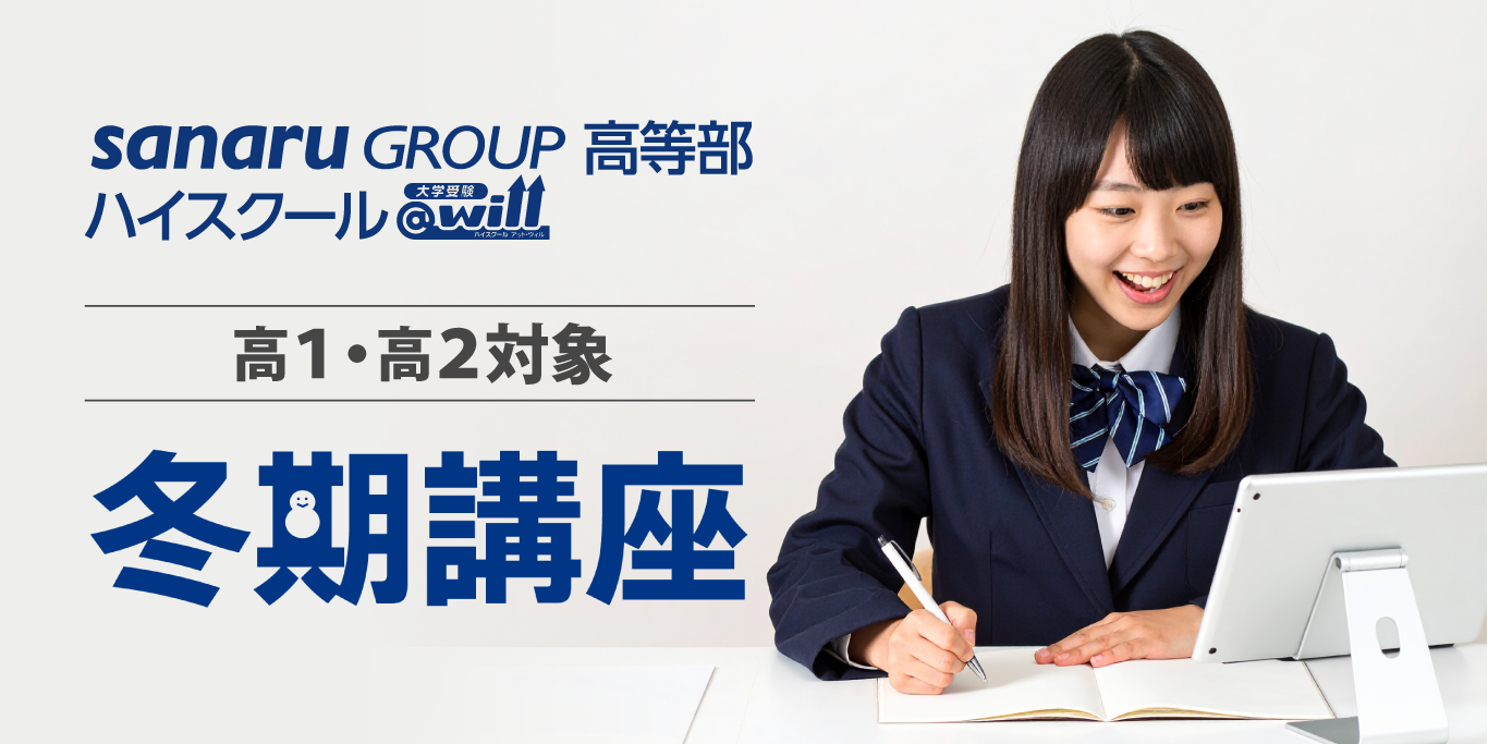 高等部 冬期講座 ホーム > 講座 > 高等部 冬期講座 冬期講座詳細はこちら さなるグループ高等部ハイスクール@willのWEBページへリンクしています。キャンペーンについても上記よりご確認ください。