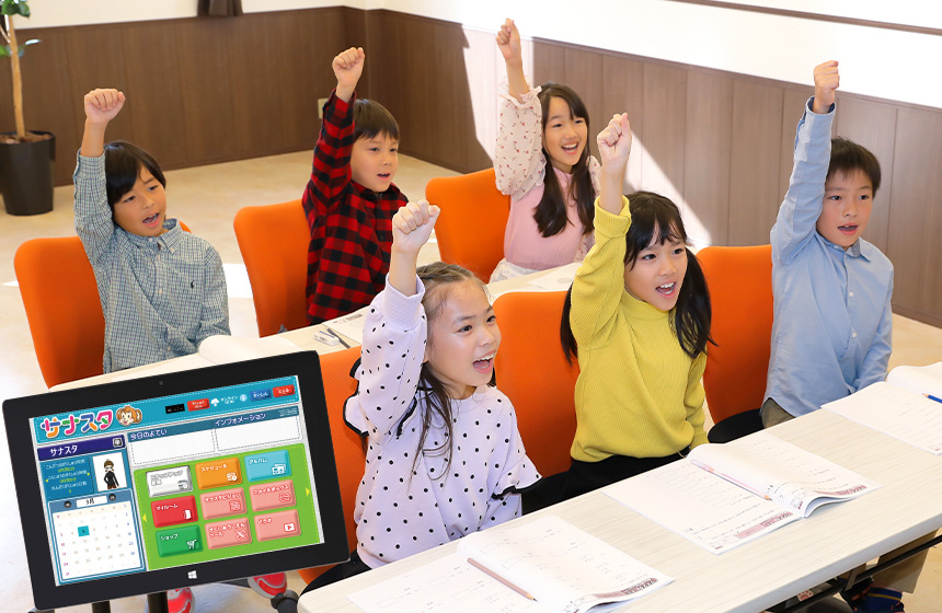 自宅のインターネット環境を通じて学習できる『サナスタビジョン』でも、計算の解説映像や、それ以外の授業で扱った映像教材を視聴することができます。家庭で効率よく予習・復習に取り組むことで、子どもたちに良い学習習慣を身につけさせます。