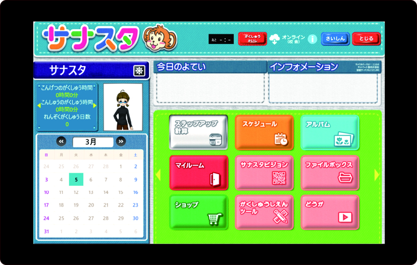 自宅・学校・さなるのスケジュールや勉強の予定時刻などを入力することができます。継続して学習することでポイントをゲット!楽しみながら自然と学習習慣が身につきます。
