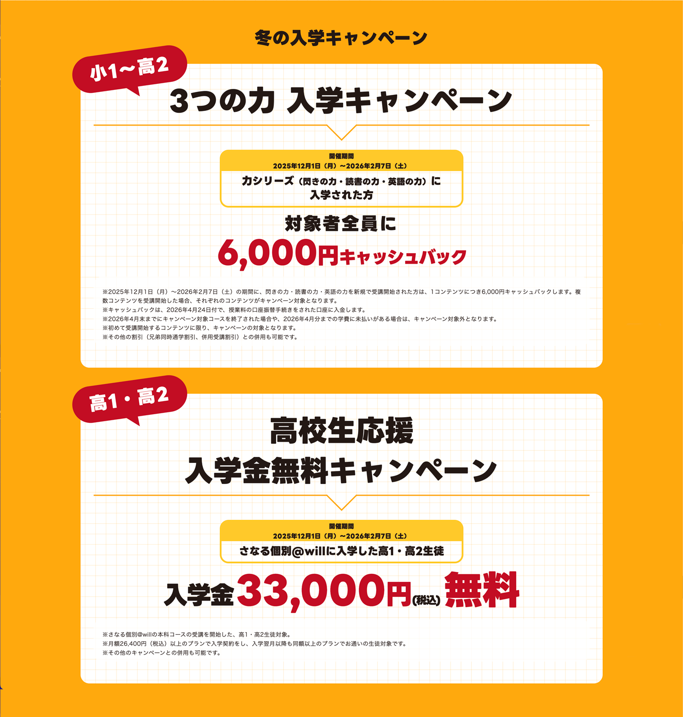 ※2025年度内に通塾開始した場合、3,000円の割引となります。 - 紹介者になることができるのは、2026年3月10日までの期間に入学申込者がお申込をされた時点で、当塾に在籍している方のみです。紹介者には、2,000円のAmazonギフトを差し上げます。