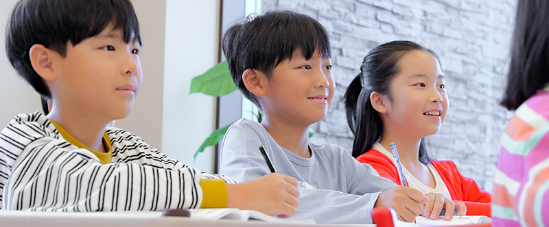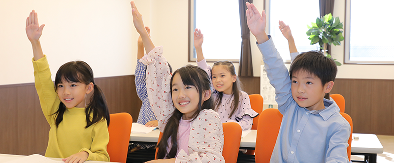授業では国語・算数を中心に、理科・社会もバランスよく学習。英語は英検®対策授業も行います。段階的・系統的なプログラムにより、基礎学力をしっかり身につけるとともに、考える力やひらめきの力も育成します。毎回の宿題や小テスト、単元ごとの確認テストに取り組むことで、目的意識や達成感が生まれ、自ら学ぶ姿勢も育ちます。