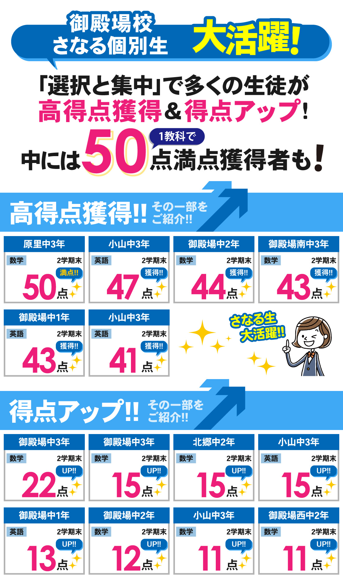 御殿場校には、集団授業の他に個別指導部門もあります。お子さん1人1人に合わせた選択をすることができます。