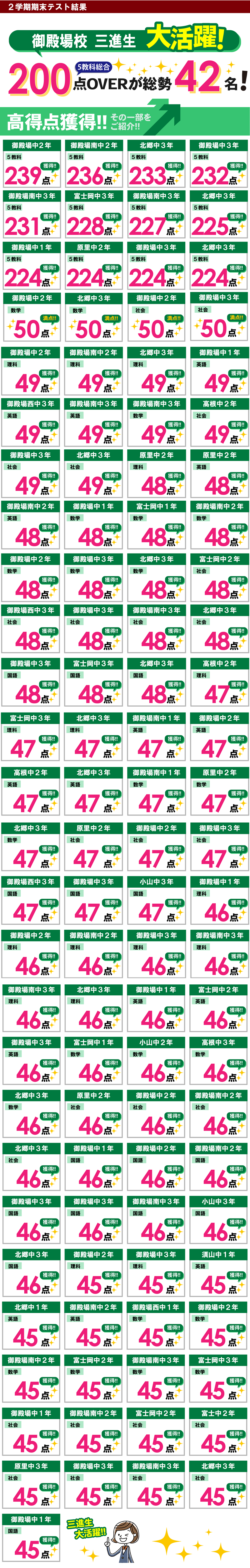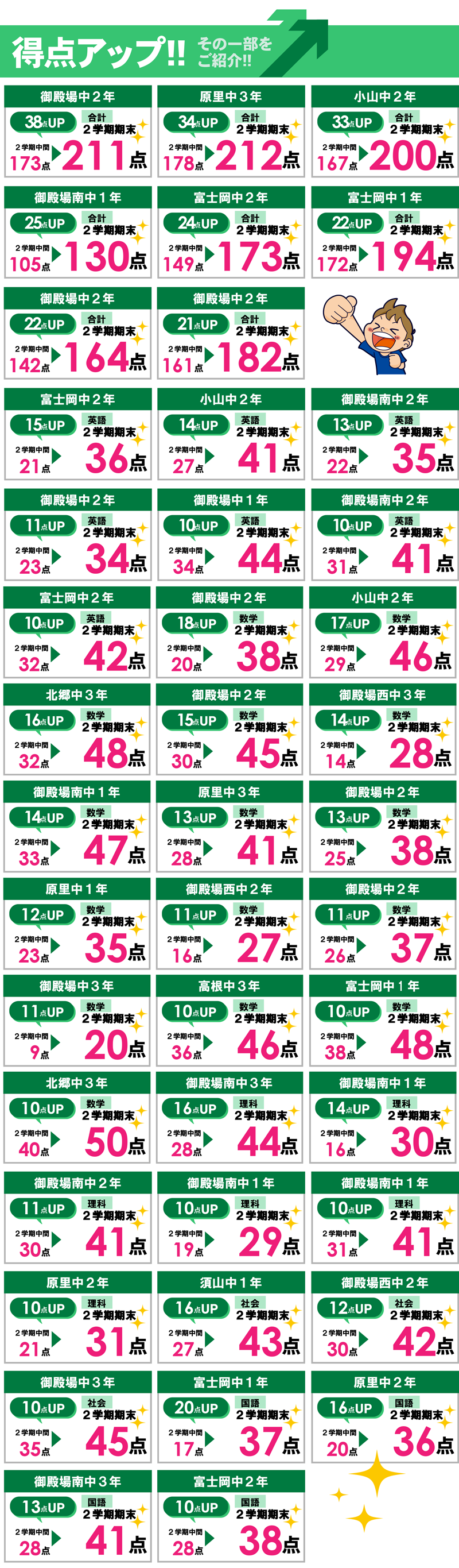御殿場中・ 御殿場南中・富士岡中・原里中・御殿場西中・高根中・北郷中・小山中 他