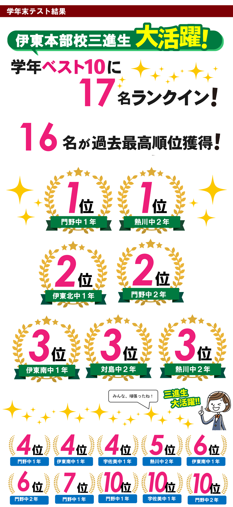 伊東本部校には、こんな小中学校の生徒さんたちが通っています