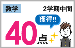 個別指導を始めてから、初めてのテストで数学40点を取ることができました。授業では分からないところを丁寧に教えてもらい、自分の弱点もはっきり分かるようになりました。少しずつ「できる」が増えていくのが楽しく、次はさらに点数を伸ばしたいです!
