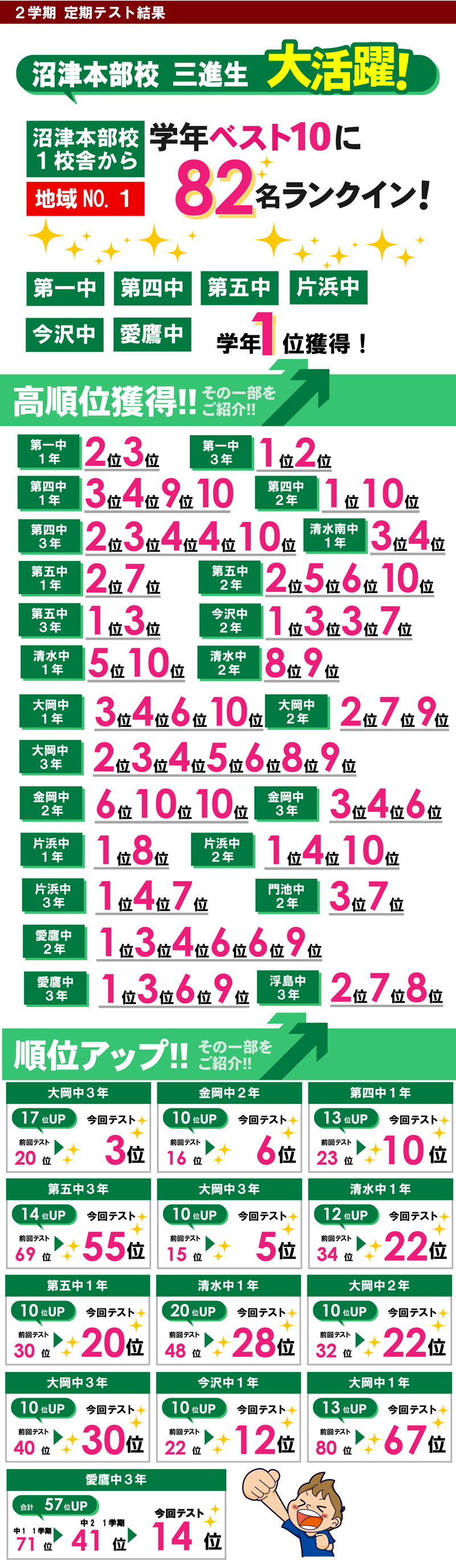 沼津本部校は今年成績を大幅に伸ばしての合格を多数輩出!