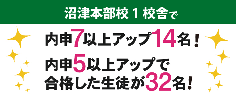 沼津本部校は今年成績を大幅に伸ばしての合格を多数輩出!